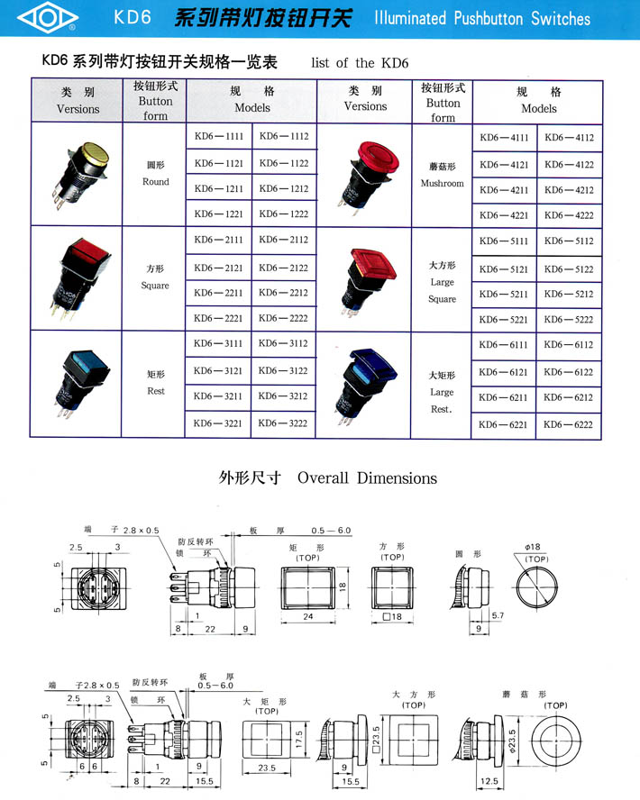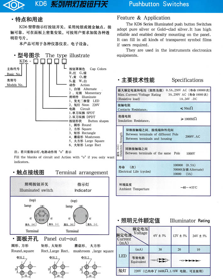 產(chǎn)品型號:KD6系列帶燈按鈕開關