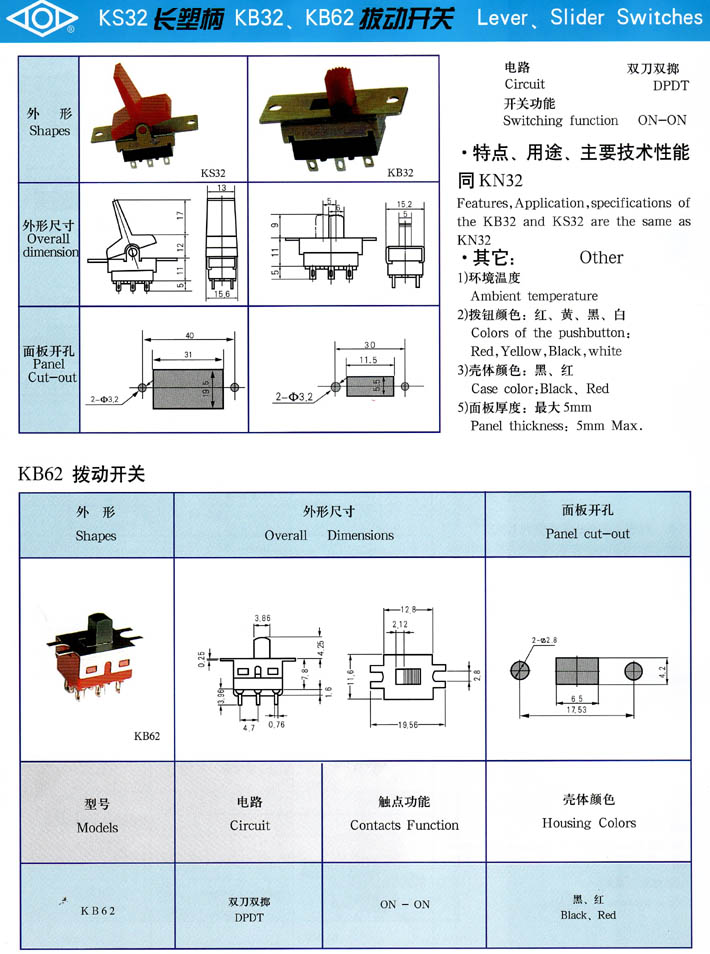 KS32/KB32/KB62拔動(dòng)開(kāi)關(guān)系列