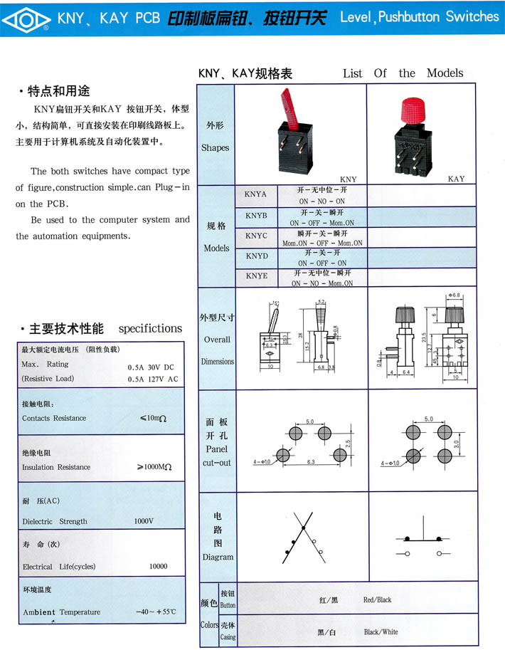 產(chǎn)品型號:KAY印制板按鈕KNY扁鈕開關(guān)